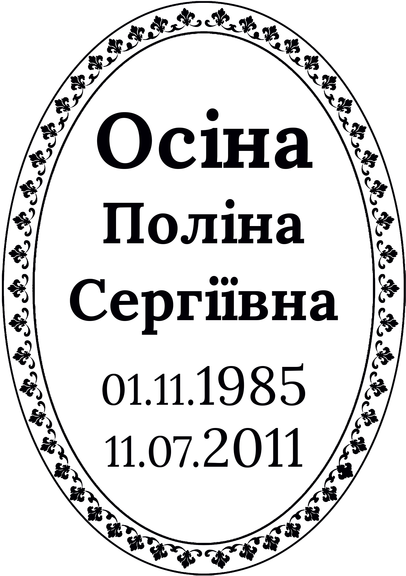 Ритуальний овал Ч/Б з текстом і вензелем на хрест, пам’ятник. Кераміка із запіканням. Гарантія на стійкість до вигоряння 30 років
