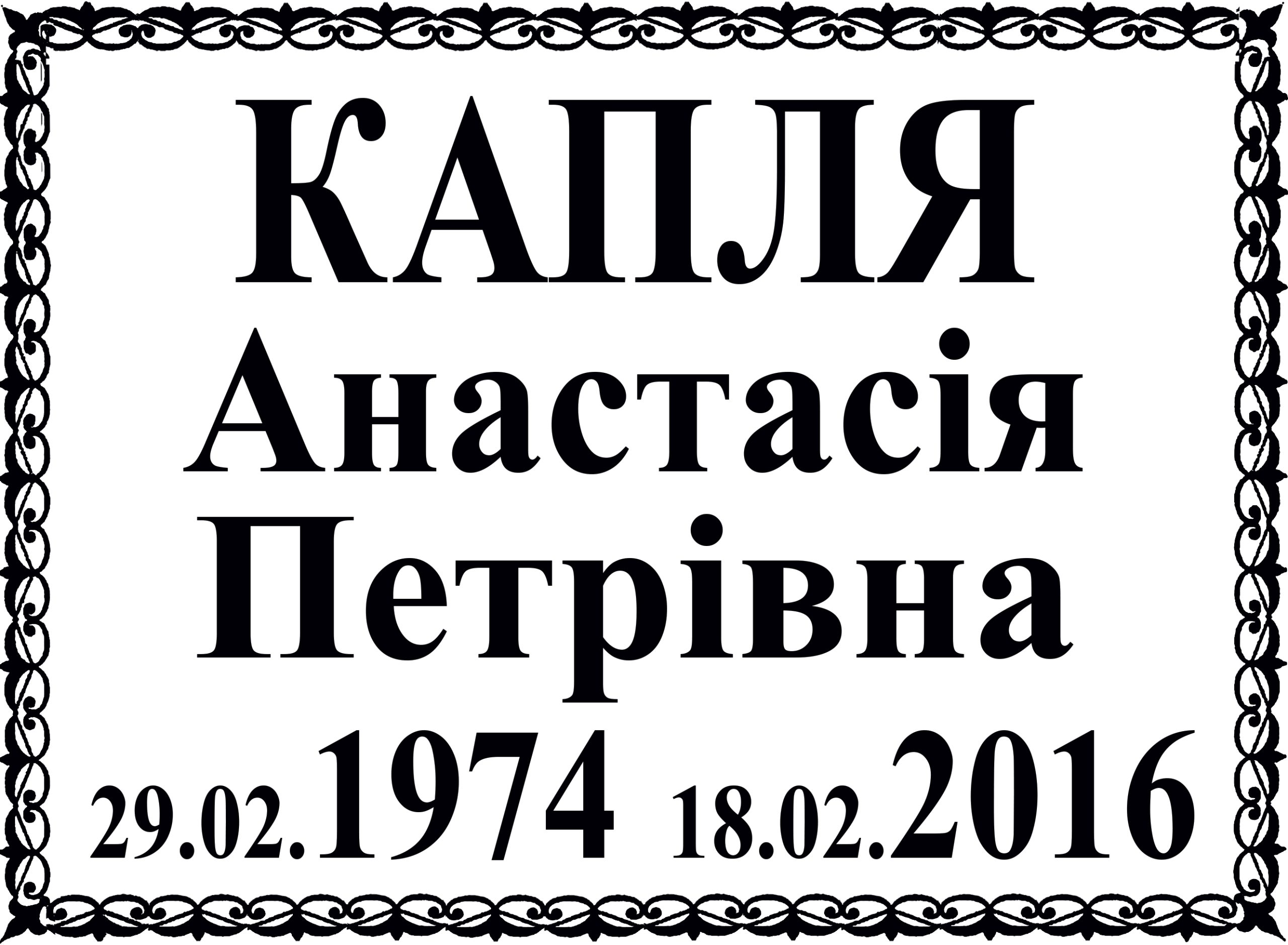 Ритуальна табличка Ч/Б з  написом та вензелем. Кераміка із запіканням. Гарантія на стійкість до вигоряння 30 років
