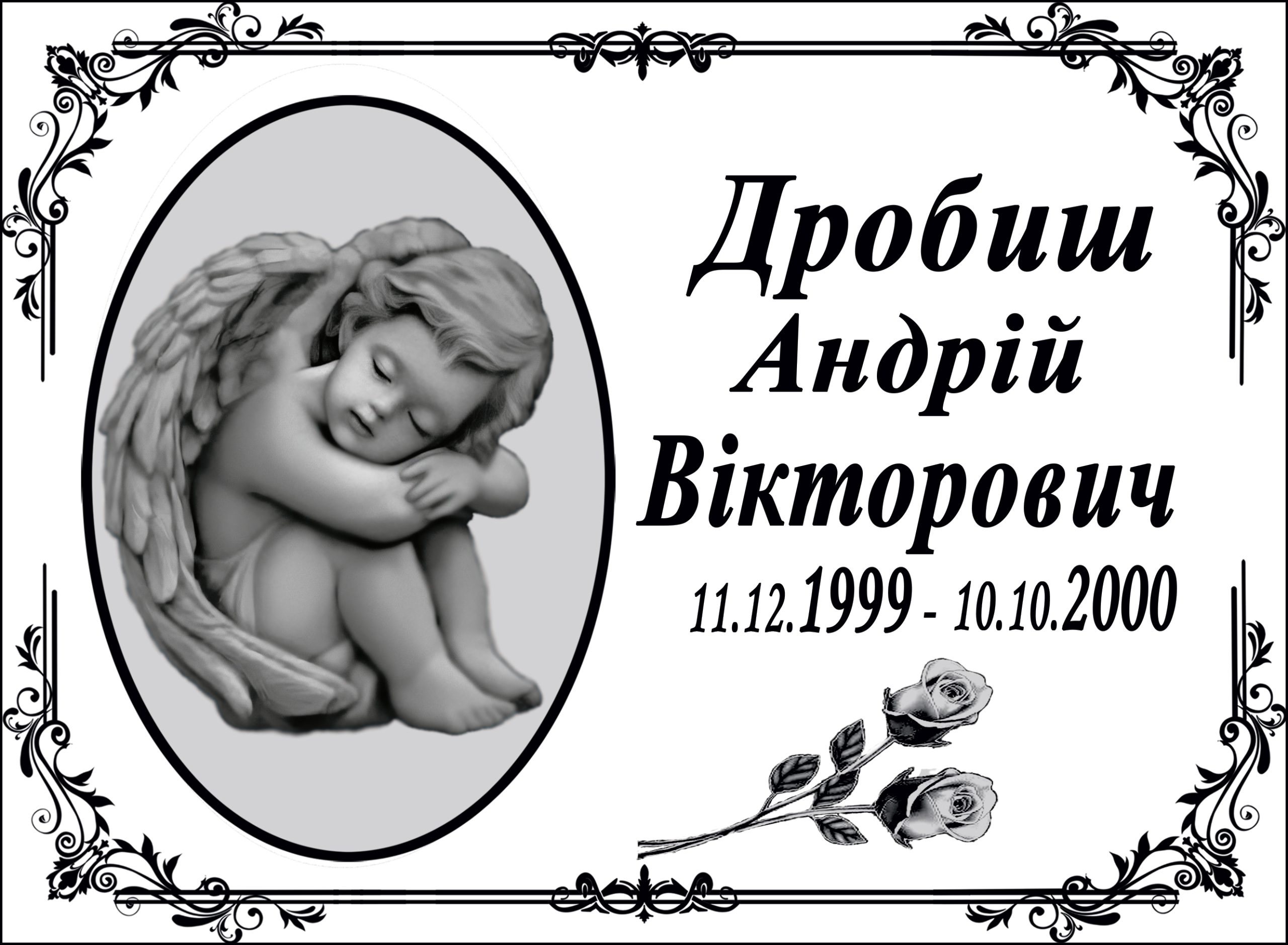 Ритуальна табличка Ч/Б. Кераміка із запіканням. Гарантія на стійкість до вигоряння 30 років