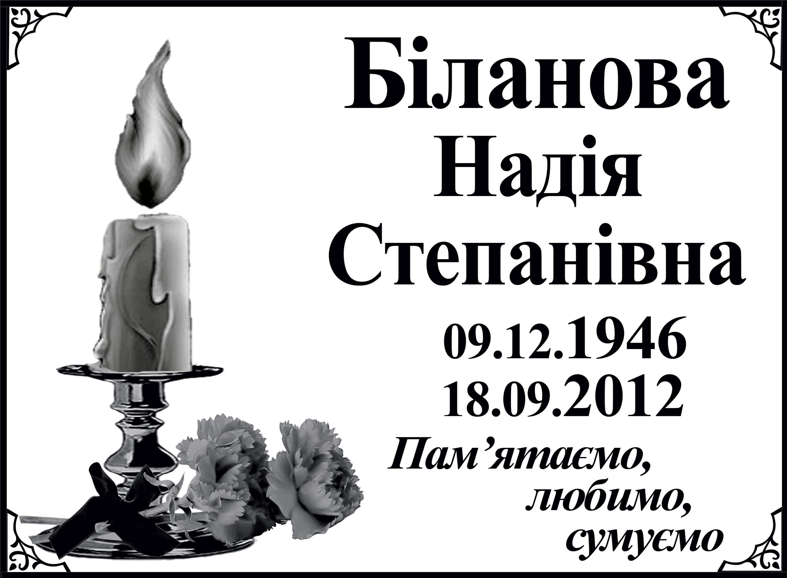 Ритуальна табличка Ч/Б з написом та кол. деколью. Кераміка із запіканням. Гарантія на стійкість до вигоряння 30 років