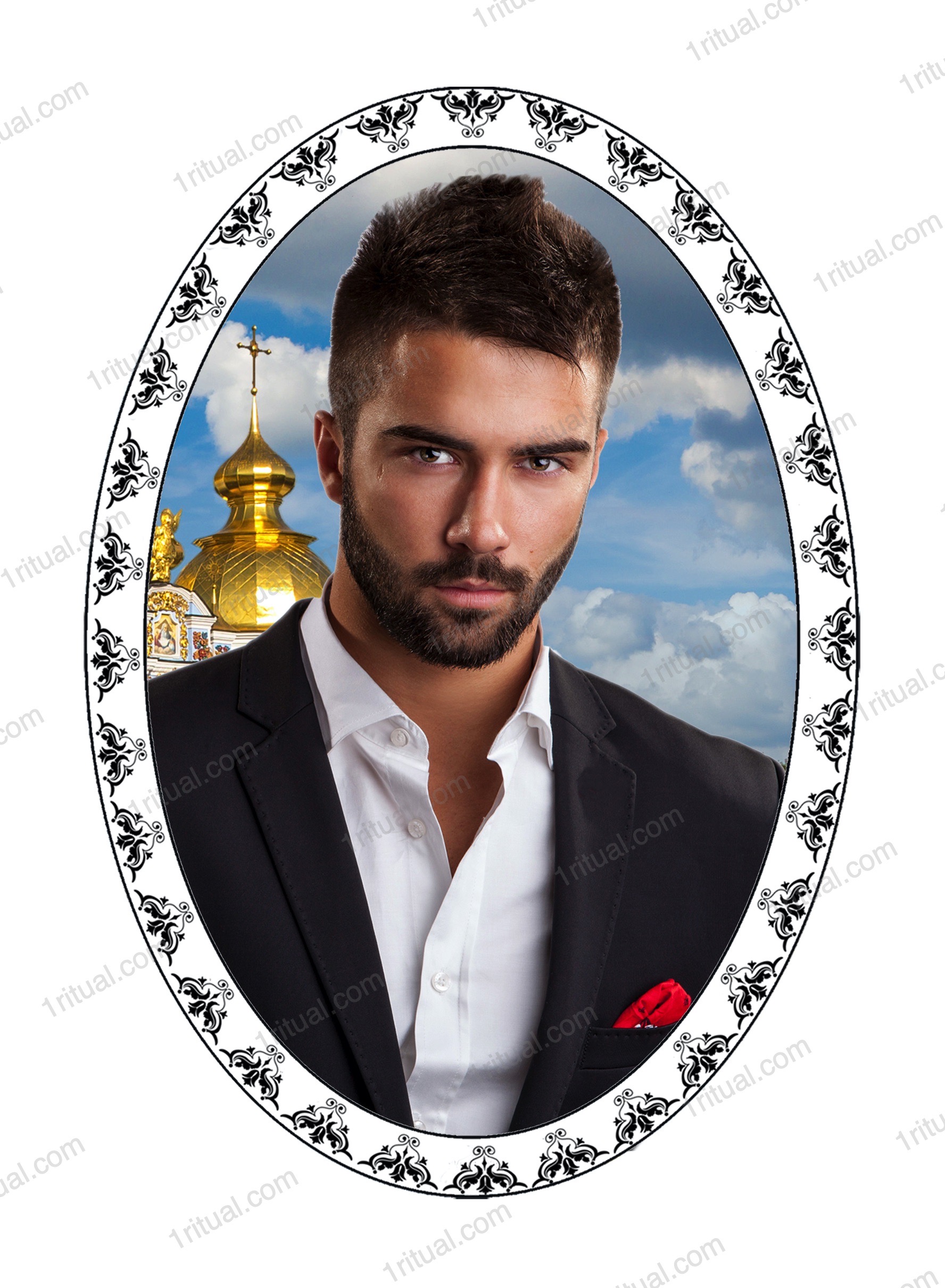 Ритуальний овал кольоровий з портретом на хрест, пам’ятник. Кераміка із запіканням. Гарантія на стійкість до вигоряння 30 років